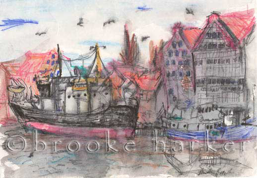 Gdansk Boats | 6″ x 9″ | Ink, watercolor, pencil | SOLD